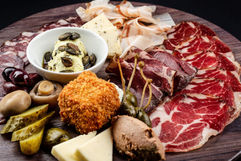 Savinjski zašinek, divjačinska salama, goveji pršut, panceta krško poljskega pujsa, ocvrta svinjska tlačenka,sir, divjačinska pašteta, skuta z bučnimi semeni in bučnim oljem, okisana zelenjava